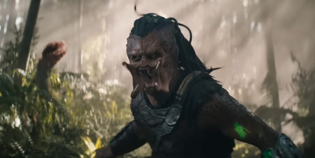 Within the first fifteen minutes, I was sold on Dek as our protagonist. His personal story is simplistic but emotionally effective to keep the audience invested as they follow him in trying to regain his honor among his clan of hunters. Dimitrius Koloamatangi portrays Dek, and he brings so much life to this character, from the action to the emotions. It is strange to see a Yautja with so much expression, but that is not a bad thing. Thanks to the strong combination of practical effects, CGI, and Koloamatangi’s performance, Dek remains the heart and soul of the movie, from beginning to end. That same mix of digital and practical work extends into the scenery that was filmed in New Zealand and enhanced with CGI to create the alien planet, which helps turn Genna into a beautiful location filled with crazy creatures and plant life.